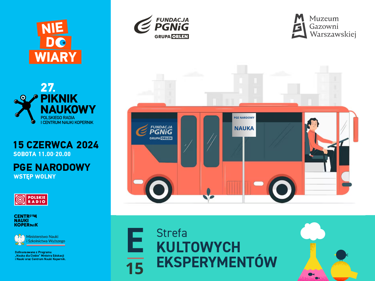 W ramach Pikniku, Fundacja PGNiG im. Ignacego Łukasiewicza zaprezentuje swój naukowy autobus – mobilne laboratorium, który będzie można znaleźć na stanowisku E15 w strefie kulturowo-naukowej. Odwiedzający będą mieli okazję zobaczyć ponad 100-letnie sprzęty i odczynniki chemiczne oraz wcielić się w rolę małych naukowców. Unikalne pokazy przybliżą ciekawostki z życia wybitnego naukowca Ignacego Łukasiewicza, ukazując jego wkład w rozwój nauki.