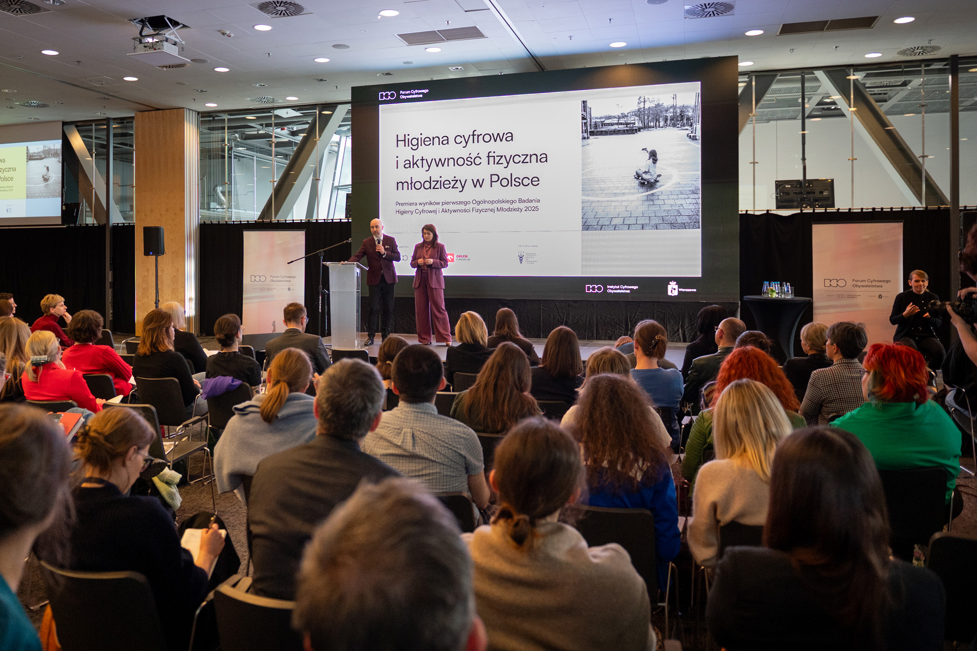 Jednym z kluczowych momentów forum była prezentacja raportu „Higiena cyfrowa i aktywność fizyczna młodzieży w Polsce", przygotowanego wspólnie przez Fundację Instytut Cyfrowego Obywatelstwa i naszą siostrzaną Fundację ORLEN, co jest uosobieniem polityki społecznej odpowiedzialności całej GK ORLEN. Dane przedstawione w raporcie, dotyczące kondycji cyfrowej i fizycznej polskich dzieci i nastolatków, stanowiły jeden z najważniejszych punktów odniesienia w dyskusjach całego forum.