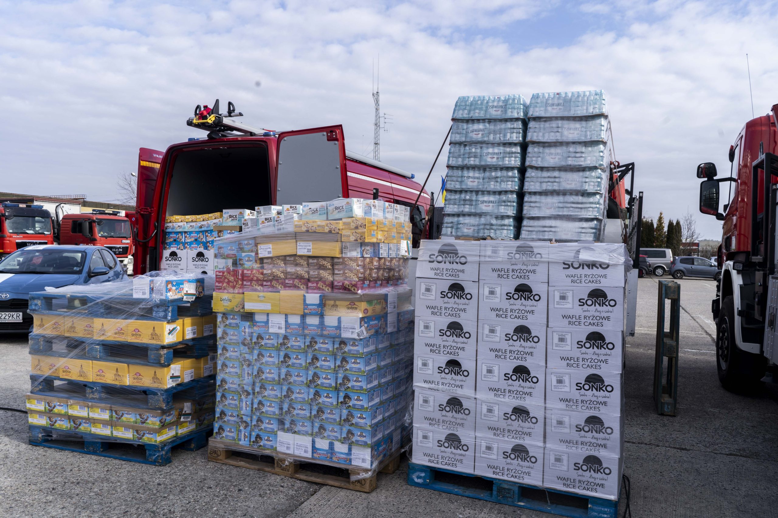 Rzeczy zostały dostarczone do 4 punktów recepcyjnych działających przy polsko-ukraińskiej granicy. Na granicę trafiło 20. tys. butelek wody i 40 tys. sztuk suchego prowiantu.